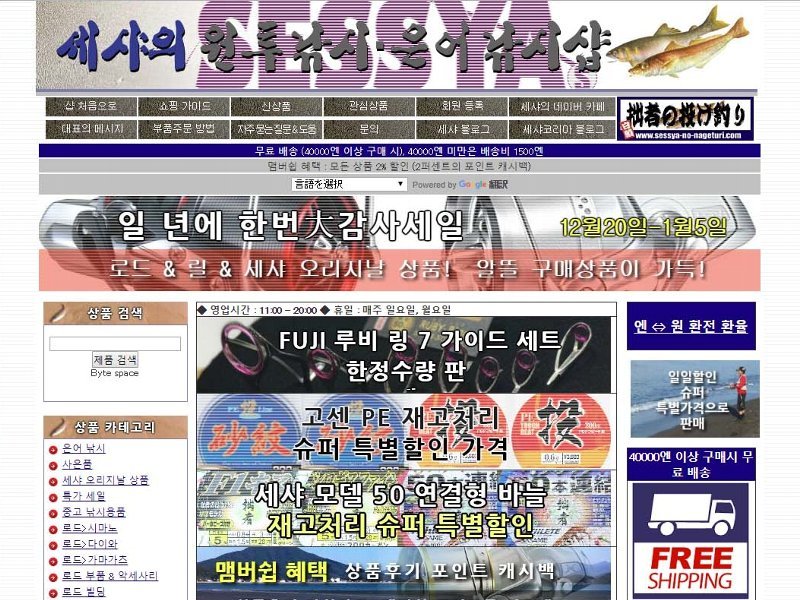 海外向け通販サイトSESSYA's Surf fishing shopオープンから2年経過。韓国人スタッフとの意見交換の結果、韓国向け専門の通販サイト「세샤의 원투낚시・은어낚시샵」をオープンしました。
