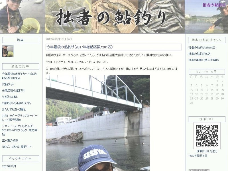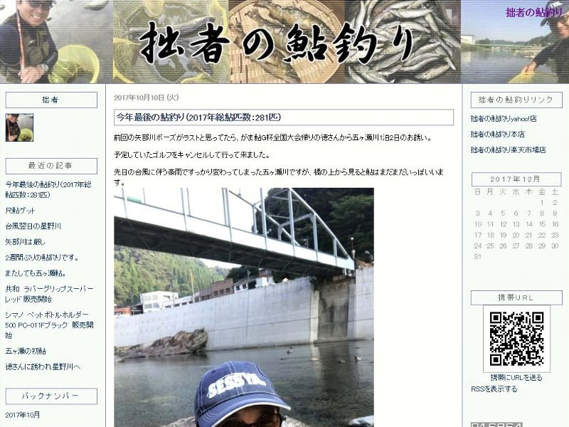 本格的に鮎釣りを始め、5月22日から10月10日までほぼ毎週鮎釣り。おかげで一気に上達しました。2017年鮎総匹数281匹。8月からは店舗名を変更し鮎用品販売を開始しました。