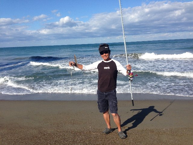 羽田に着いたら、どんよりとした雨雲。いやーな感じです。レンタカーで走り出すと、やっぱり雨。東京、埼玉、千葉、茨城を通過。約2時間200km程走ると、雨も上がり、目的地の福島県いわき市小浜海水浴場に到着しました。福島県キス情報はほとんど無く、北海道の時と同じようにgoogle Earthで海岸線を調査してココに決めました。