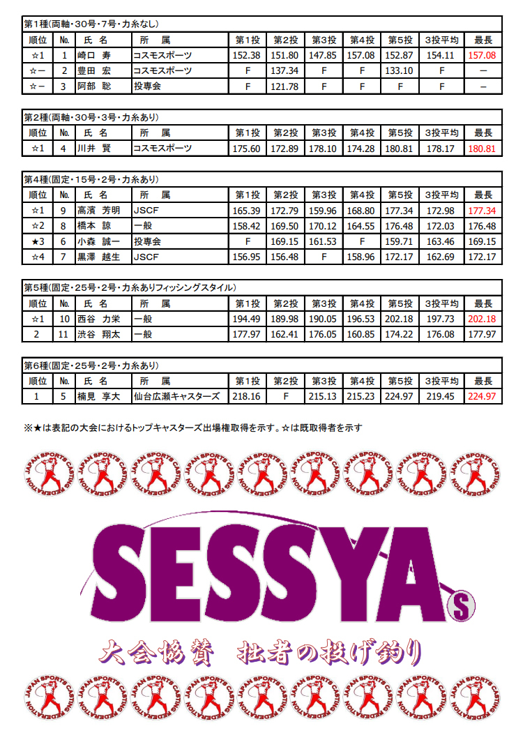 1976年にJapan Top Caster's Tournament 第1回大会が開催されました。その運営母体であるジャパンスポーツキャスティング連盟(J.S.C.F)が主催するキャスティング大会に、2015年から株式会社SESSYAが協賛しています。