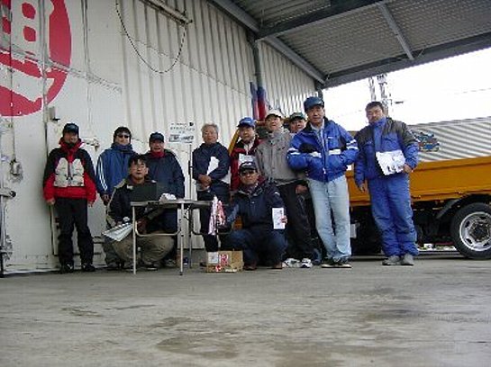 愛宕浜漁協さん、投乃助さん、落ち武者さんも合流してきた。そろそろ、大会終了の13時。釣り吉さん、kawaさんを除く全員が集合して、大会本部を設営し、受付した。メインイベントの検量は釣り吉さんとkawaさんが到着してから行った。