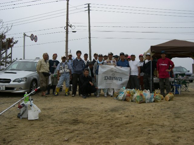 その後、恒例の海岸清掃し、記念撮影。臨時の釣具店をオープンして、お開きとなりました。参加の皆様、お疲れ様でした。
