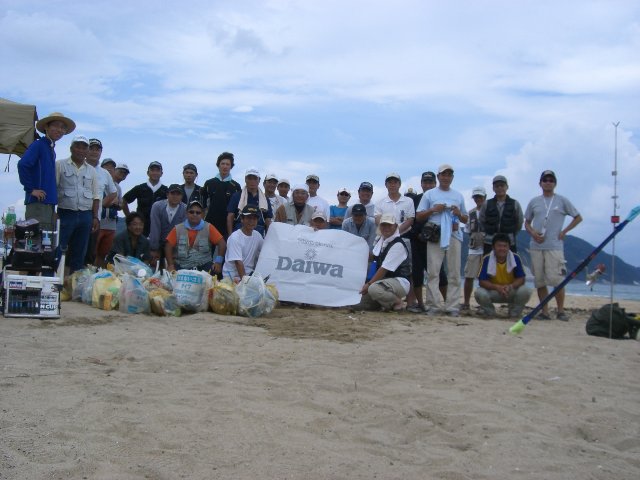 表彰式の最後にジャンケン大会。今回の賞品はイグロクーラー、じーじ3さん提供の焼酎、彦一さん提供の迷彩グッズ、DONさん提供のキス仕掛を6人がゲット。閉会の後、恒例の海岸清掃をしました。皆様お疲れ様でした。