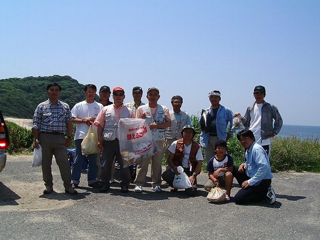 大会終了後にシマノが推進する「クリーンナッププロジェクト」に賛同し、釣り場のゴミ拾いを全員で行いました。姉子ヶ浜は定期的にゴミ拾いをしているようで、大きなゴミはほとんどありませんでしたが、花火のゴミや煙草の吸い殻、紙くず等が落ちていました。観光スポットなので、人が結構いて、「何やってんの?」てな感じで見られました。