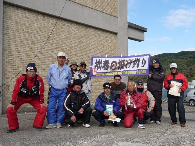 11月下旬から唐津カレイが釣れ始めました。12月に入り急激に冷え込み大会前日は寒波到来で、前夜祭中止となってしまいました。大会当日は曇りのち晴れでまずまずの天気でしたが、魚の活性が低く、20cm以上のカレイは投之助さんの31.5cm1枚のみでした。9月の第5回組対抗ウキウキ超ビッチ潮吹杯キスに続き連続優勝、おめでとうございました。次回は、2月のカレイ大会。今度はカレイ爆釣かな?