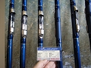 - 大物釣り用並継ぎ竿です。新設計のリールシートにより、リールの強力な固定力を図っています。リールシートを取り外して、移動させるというわけにはいかなさそうです。バットガイドに40mmの大口径ガイド(ステンレス)を採用し、他のガイドもチタンハイスピンダーガイドを用いて太糸に対応させています。