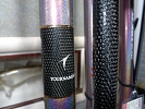が、今回の3DクロスはコンペⅡの3Dクロスから進化しています。より高弾性のカーボン素材を使って、より密に編み込んでいます。元竿には黒くカーボンの地肌が確認できるところがあります、見た目で網タイツの模様が極め細かくなっていることが確認できます。新期開発の3Dクロスですよーとアピールされているようです・・・カタログでは自重が赤竿と比べて重くなっております、この重くなった分は元竿やHスペックの#2番が肉厚にし剛性を持たせたものだということでした。実際に投げて・サビいてみて、そのバランスを確かめてみたいものです