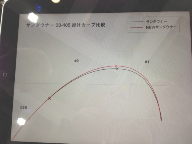前モデルに比較して、先調子、先が柔らかい、胴が堅くて粘りがある、方向性が良い、キャスティング重視でありながら実釣にも良い。旧モデルとの掛けカーブ比較を見ると一目瞭然です。