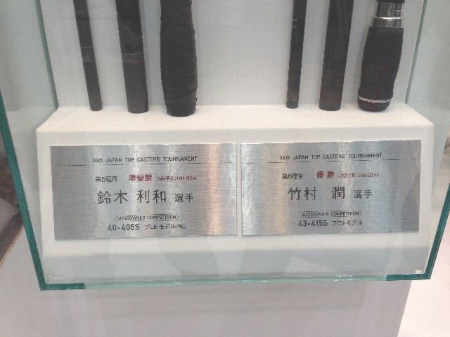 投げカタログにも掲載されていましたが、キャスティング大会優勝者4名のサンダウナーコンペエディションプロトモデルが飾られていました。