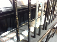 スピンパワー並継、振出がずらりと並んでました。相変わらずスピンパワーは超人気です。