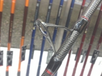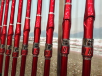 ところで、色の件ですが、トーナメントキャスターと言えば「赤」を連想します。しかしこの竿は黒というかカーボンむき出しの「クリア塗装」です。赤で塗装をすると竿本来の特性が変わってしまうからだと思われます。塗装ではなく、使うカーボン自体に色を付けても良かったかも。