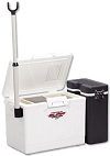 まず、一番目立つ利点はとにかくコンパクトで軽いということです。キス釣り専用とは言わず、冬季のウキ釣りや防波堤での投げ釣り等の短期の釣行では絶対にこれを使用しています。サイドボックスには仕掛け、力糸、ウキ等の小物を収納。内部の上部トレーには石粉やエサパック予備を収納。投入口の下にはプラスチックのトレーを入れておけば魚でクーラーは汚れないようになりました。これらの釣りに必要な全てのものが収納できているのでこのクーラーのあるところに行けばすぐにエサ付け等ができるのであっちこっち動いて物を探すという動作がなくなるので、非常に手返しがよくなりました。