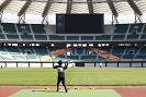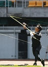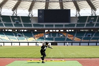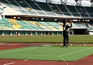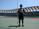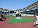 スタジアムの横にある、投てき場が前日の練習場所となっている。数人の選手が、練習を行っていた。ここで、明日に向けてのフォームチェックとタックルのチェックを行った。特に、本番でパッチンしないように準備したスプール全てをラインチェックする。入荷したばかりのADT7度スプールが今回の新兵器だ。初めての使用だったから、トラブルが無いか、この場で十分チェックする。テストの結果バッククラシュもすることなく、ラインの放出も調子いい様子だった。本番で威力を発揮するよう期待した。