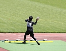「ちょっと待ってください!前の選手が出てから合図します」審判に止められた。ちょっと焦っていたようだ、落ち着いて冷静を取り戻す。「合図」のあと、投てきエリアに足を踏み入れると直ちに「スタート!」の声がかかる。ここから1分間に投げないとファールとなる。