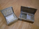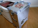 少し石粉が付いていますが、綺麗になりすぎるので、あえて洗いませんでした(笑)光沢も持続している状態で、綺麗な木目は健在です。この餌箱を持参して、釣り具屋にエサを買いにいくと、立派な餌箱ですねと褒められます。「餌を宝のように可愛がってます」と返答します・・・竿たてに取り付けていたときに、竿たてを倒してしまい餌箱の一部が割れてしまい、蓋がはずれたことがありました。蓋の結合部分の一部が割れたので、エポキシボンドで修理しました。堅い材質のようで綺麗に接着出来ました。修理以後問題なく快適に使用しています。