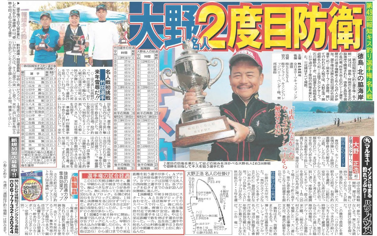 第49回報知キス釣り名人戦結果