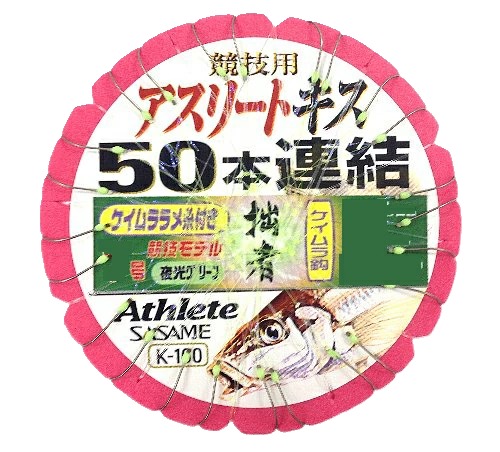 (数量限定)拙者 アスリートキスケイムラ鈎 50本連結仕掛 夜光塗 ケイムララメ糸 3.5号