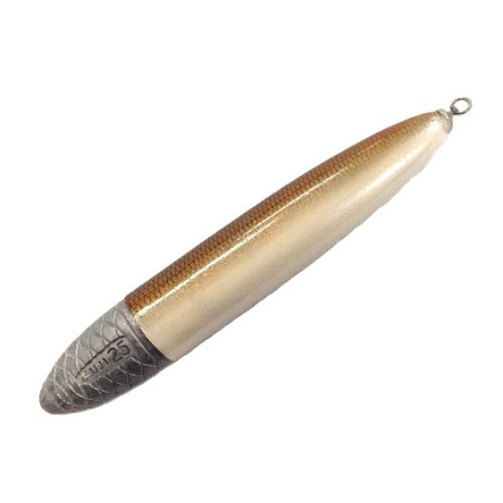 ウロコ模様をシンカーの60%程度に施す事により、上部(全面ウロコ模様)、側面(半分がウロコ模様)、底面(全面ホワイトラメ)の見た目が異なります。