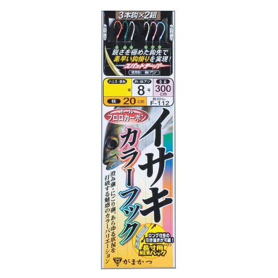 がまかつ イサキカラーフック 3本仕掛 8号 ハリス2号 (5袋)