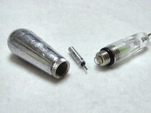 ネジ式上部キャップを外して、ピン形リチウム電池 BR425型を入れるだけ。