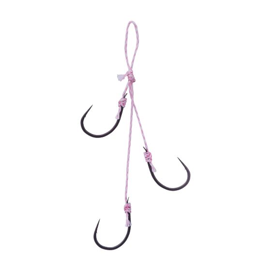 ターゲットの自重でバーブまで深く刺し、あわせ不要でのフッキングを実現しました。細軸軽量フックで、3本、4本などマルチフックシステムにも最適です。
