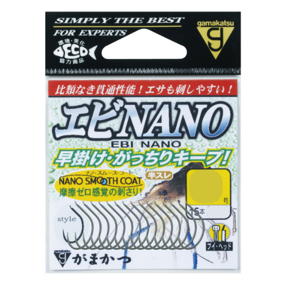 「ナノスムースコート」による鈎先の鋭さと抜群の貫通力は大型エビの硬い口をも容易に貫きます。