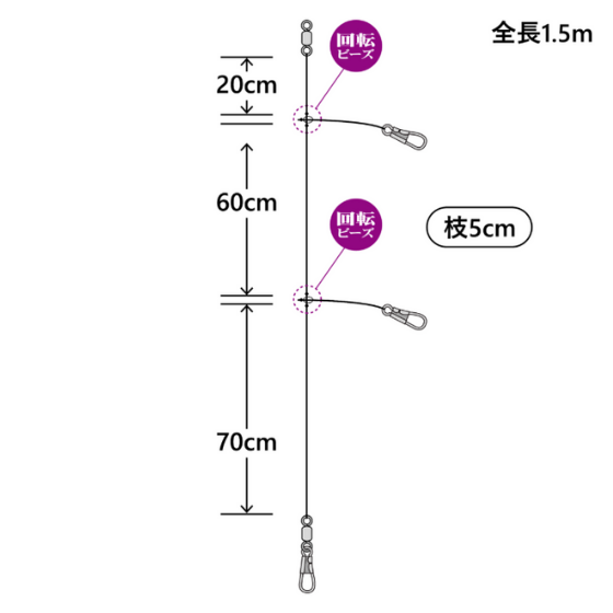 熱く盛り上がるイカメタルゲームに!先端のスナップに鉛スッテを付け、枝には浮スッテを使用する最もベーシックな仕様。