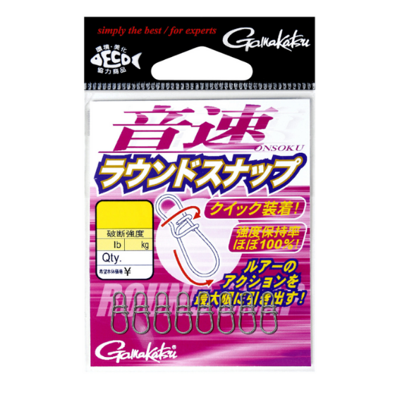“強度”の「音速パワースナップ」に対して、“動き”の「音速ラウンドスナップ」。ラウンド形状により、ルアーの可動域を確保、また線径を従来の「音速パワースナップ」よりワンランク細く設定することにより軽量化し、ルアーの動きを妨げません。シビアな状況下でのルアーローテーションには欠かせないアイテムです。