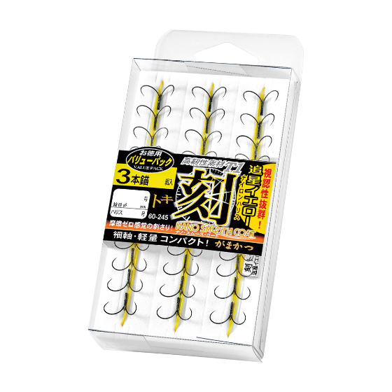 細軸コンパクト設計の超尖鋭鈎先と低摩擦「ナノスムースコート」が桁外れの貫通力を実現。前アタリなしの一発掛けで、触れた鮎が全て掛かっているかのようなケラレゼロ感覚を体験していただけます。しなやかな鮎ナイロンハリス仕様の錨で、3本錨と4本錨からお好みや状況に合わせてお選びください。 追星イエロー