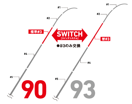 中節を交換し、長さと調子を変える新構造「スイッチシステム」