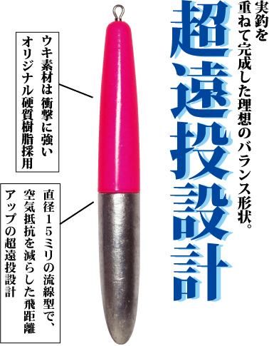 直径15mmの流線型で、空気抵抗を減らした飛距離アップの超遠投設計!