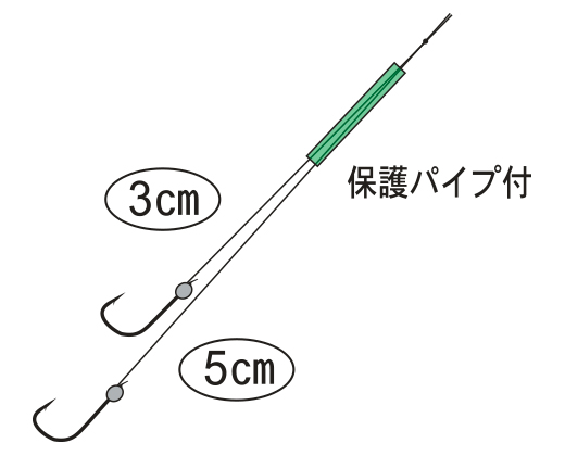 吸い込みがいい下鈎をダブルで装着できる欲ばりな「ダブル下鈎」。カラミ止めパイプ付でハリスがまっすぐ下向きになり、しっかりと底にはわせ、アタリを出すことができます。