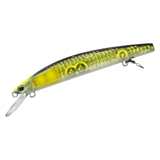 浮力をギリギリまで減らし、水中を漂う様なアクションを演出。大型のリップが水を受け、まるで水中でアユが苔をはむ様にボトムをトレース可能。