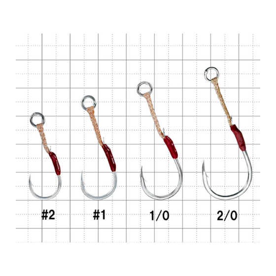 シルエットの小さいジグ、またはタングステンジグでないと反応しないシチュエーションは多々あります。しかし、ジグは小さくてもターゲットは大型魚。通常のライトタイプのアシストフックでは太刀打ちできない。